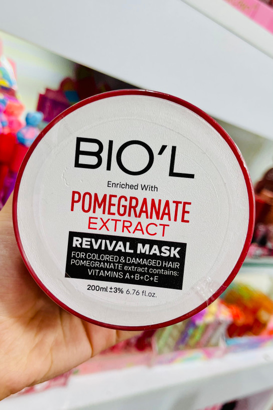 انار میوهای شفابخش و سرشار از ویتامین و املاح معدنی است که در افزایش عمر سلولها و ترمیم سلولهای آسیبدیده بسیار موثر است. ماسک موی انار بیول نیز به سبب وجود عصاره انار سرشار از ویتامین های A، B، C، E به همراه آهن است. کراتین نیز از دیگر ترکیبات موثر این محصول است که خواص آن برای سلامت و محافظت از مو اثبات شده است. این ماسک مو مناسب موی رنگ شده آسیبدیده و موهایی که برروی آنها از مواد شیمیایی مانند مواد فر یا دکلره استفاده شده است. فلسهای مو در اثر این مواد و تغییرات محیط PH موی سر، از حالت منظم خود خارج گشته و به شکل فلسهای شاخی شکل میشوند.