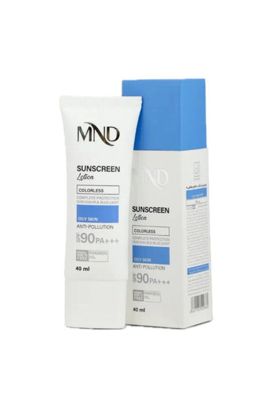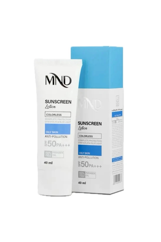 لوسیون ضد آفتاب ام ان دی مناسب پوست چرب بی رنگ 40 میل